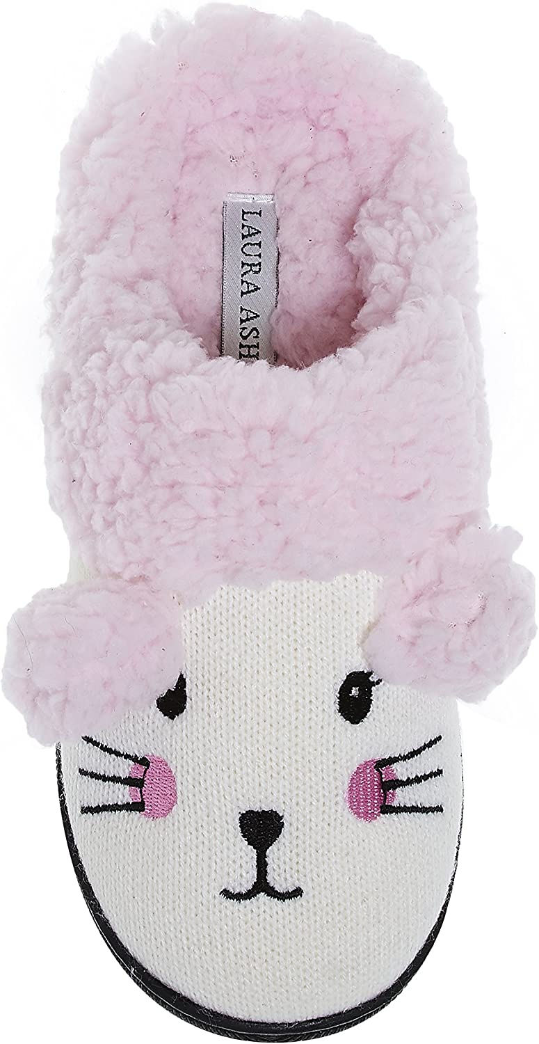 Laura Ashley Kids Girls Cat Sherpa Knitted Slippers (See Colors and Sizes)