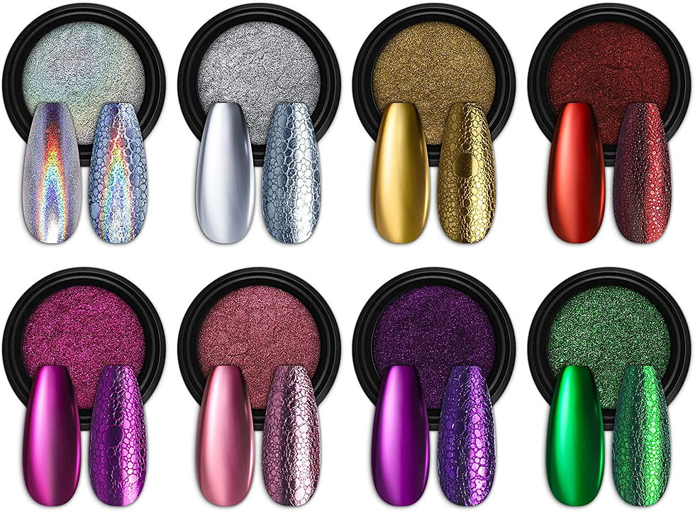 KUKA Iridescent Glitter Chameleon Nail Flakes Set Chrome Nail Powder Mirror Mer