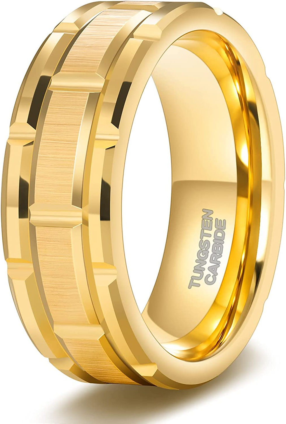 8mm Mens Tungsten Wedding Band Silver/ Gold/Black Brick Pattern Brushed Finish