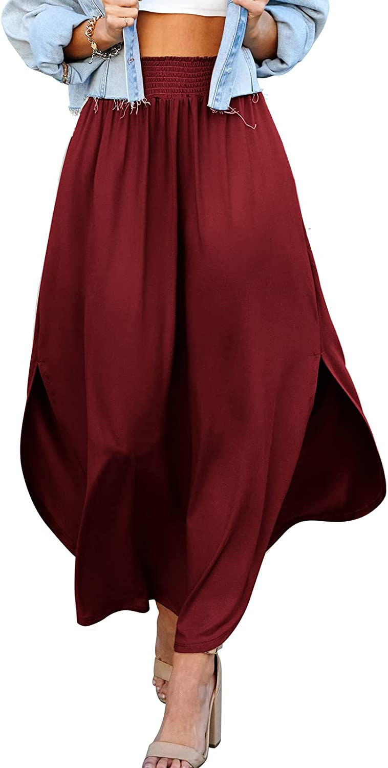 DOUBLJU Women's Waist Band Side Split Maxi Skirt with Pocket